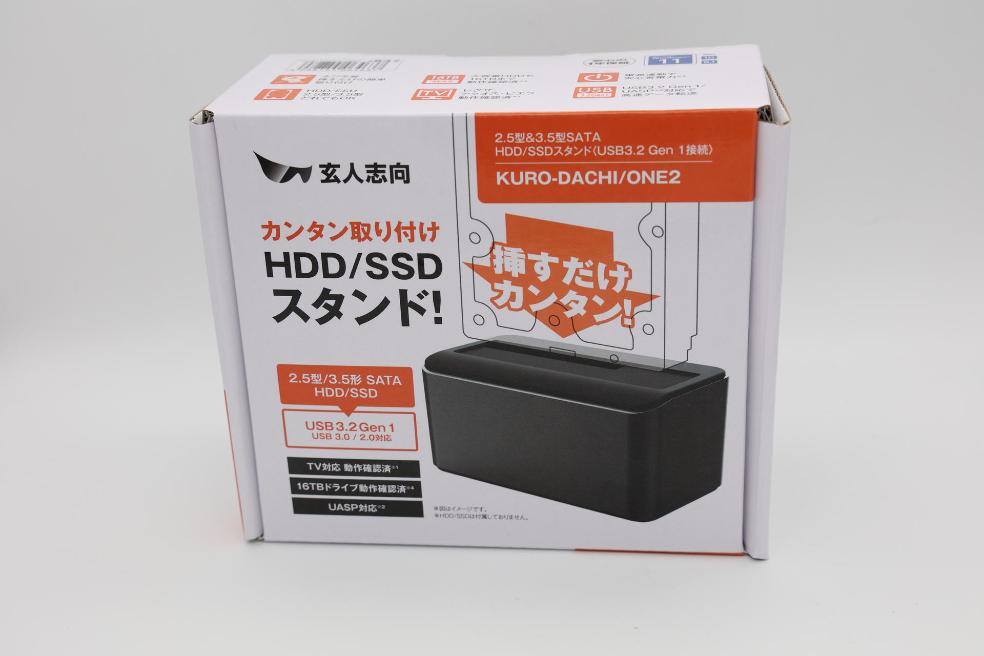 というわけで玄人志向のHDD/SSDスタンド KURO-DACHI/ONE2を購入。HDDを直挿しするとそのまま外付けHDDになるというそのまんまの製品。