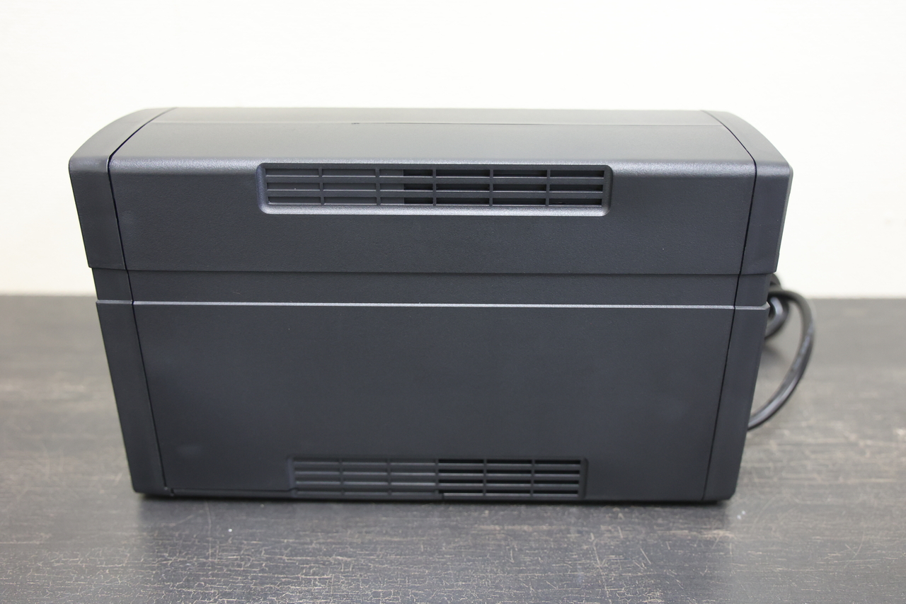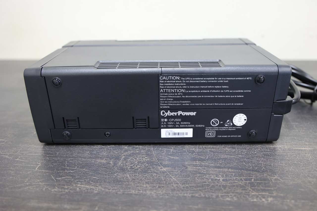 ちなみにこのCyberPower CPJ500、UPSとしては比較的小型らしいのだがそこそこでかい。サイズはケーブルを含まない状態で約280×92×165mmで、重さも割とずっしりしている。それもそのはず、中には鉛バッテリーが入っているのだ。