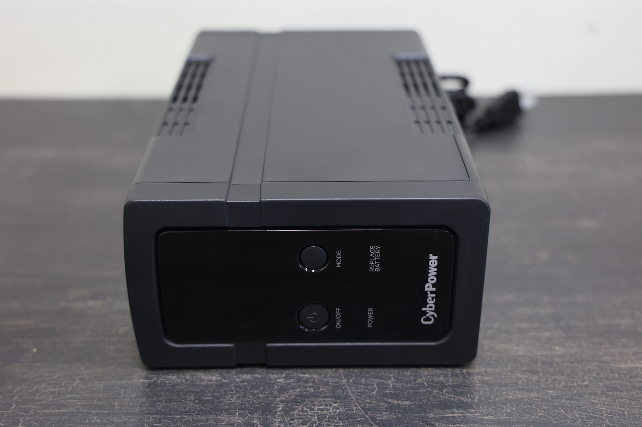 ちなみにCyberPower CPJ500は横置きも可能だが、給排気口の都合により横置きする時はこの向きに限られる。