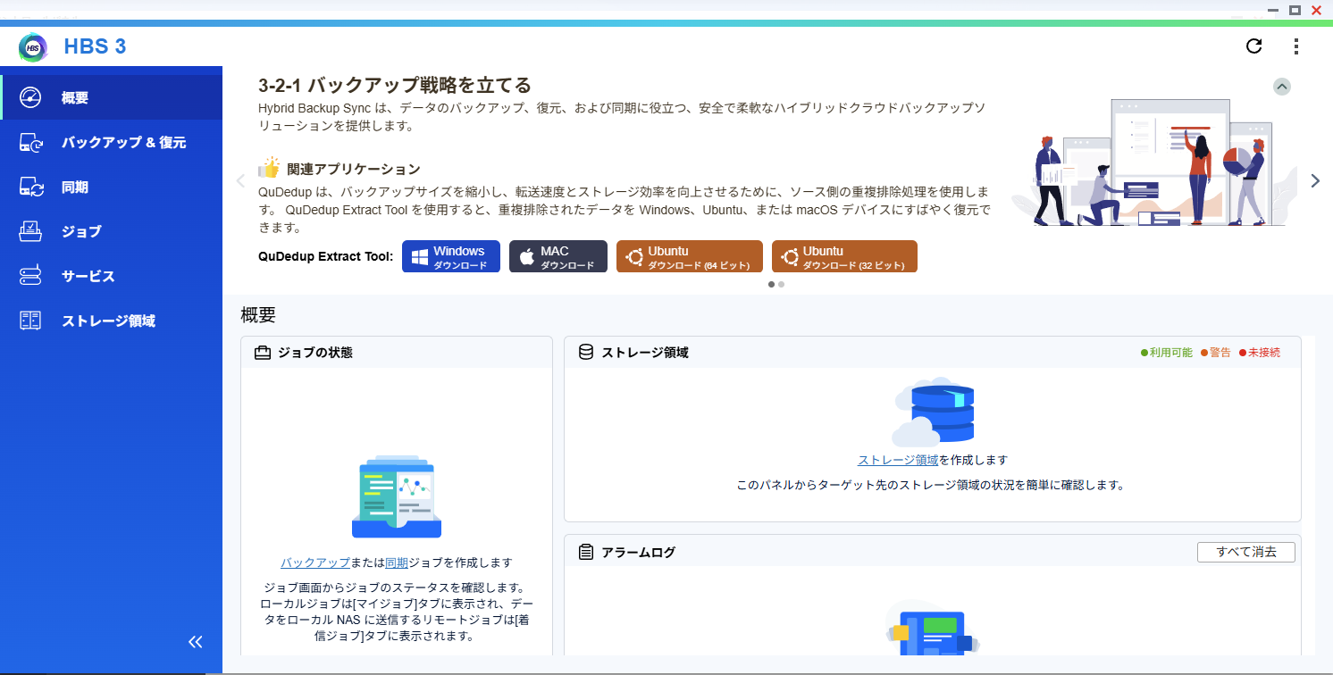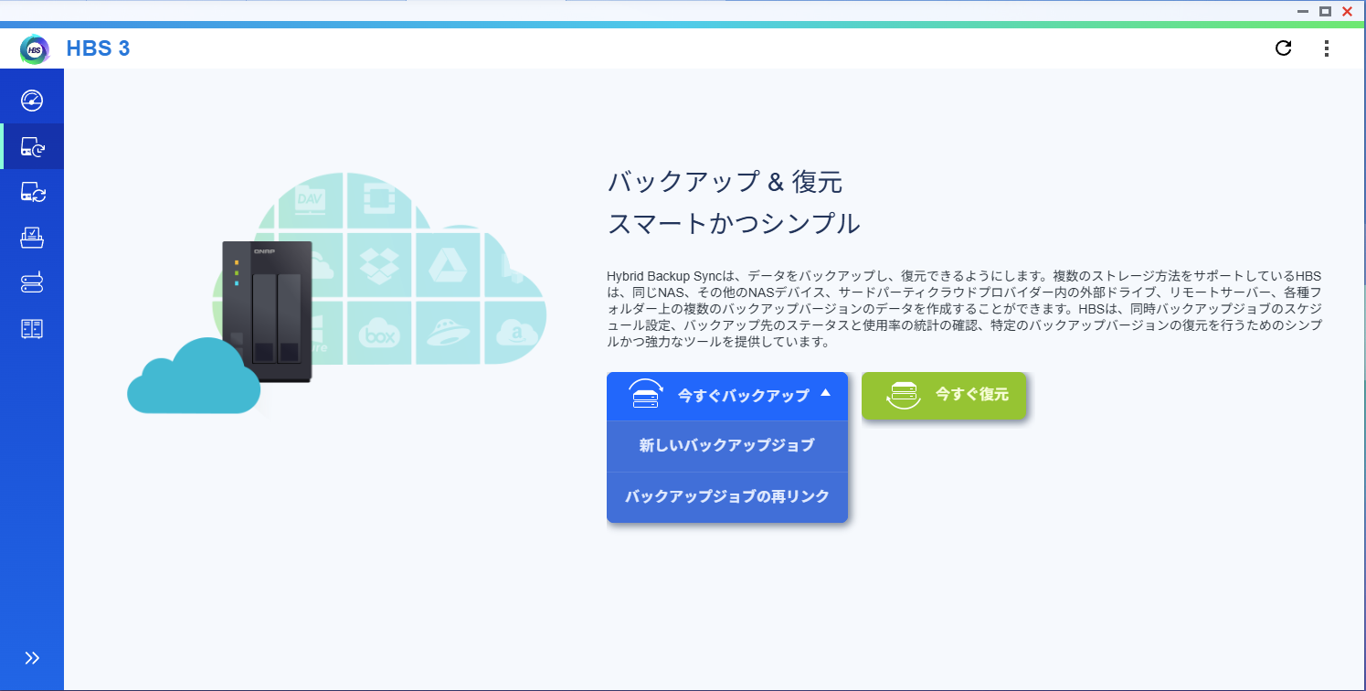 NAS内のデータのバックアップを取得するには、QNAPのHybrid Backup Sync(HBS)アプリを使用する。