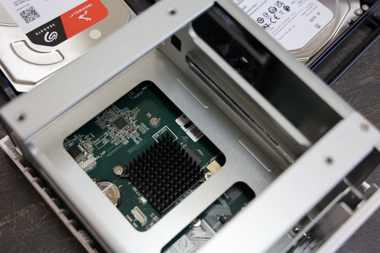 QNAP TS-233はネジ一本でバラバラに分解できる構造になっている。必ず管理画面から正規の手順でシャットダウンを行ってから電源コードなどを外そう。