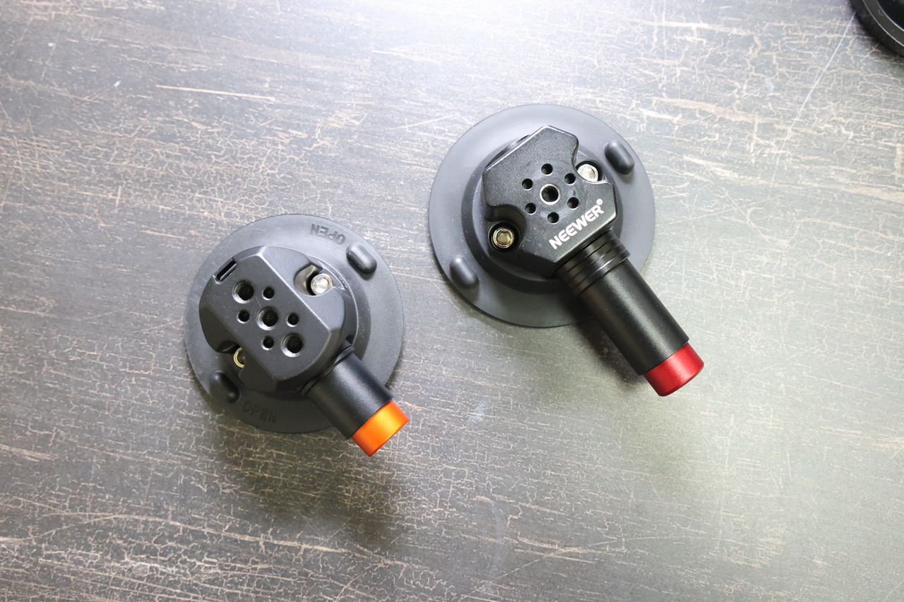 NEEWERでは約10回ほどポンピングすれば完全に吸い付くところ、K&F Conceptだと20回ちょっとは押さないと吸盤が完全に吸い付かない。そのため設置におおよそ倍の時間がかかる。とはいえNEEWERで10秒かかるものが20秒になるぐらいの差だが。